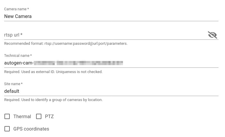 Thermal: Tick this checkbox if the camera is a thermal one.