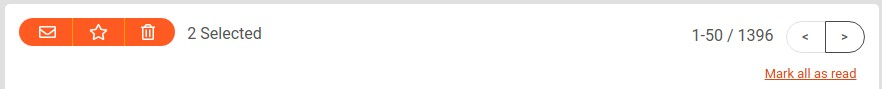 Tick the checkboxes of the respective Events, or tick the checkbox at the top left corner of the Event list to select or deselect all currently displayed Events. You may change their status by clicking the three orange icons (shown above). Alternatively, to mark an Event as Starred or toggle their Read/Unread status, click the corresponding icon on the Event's row.