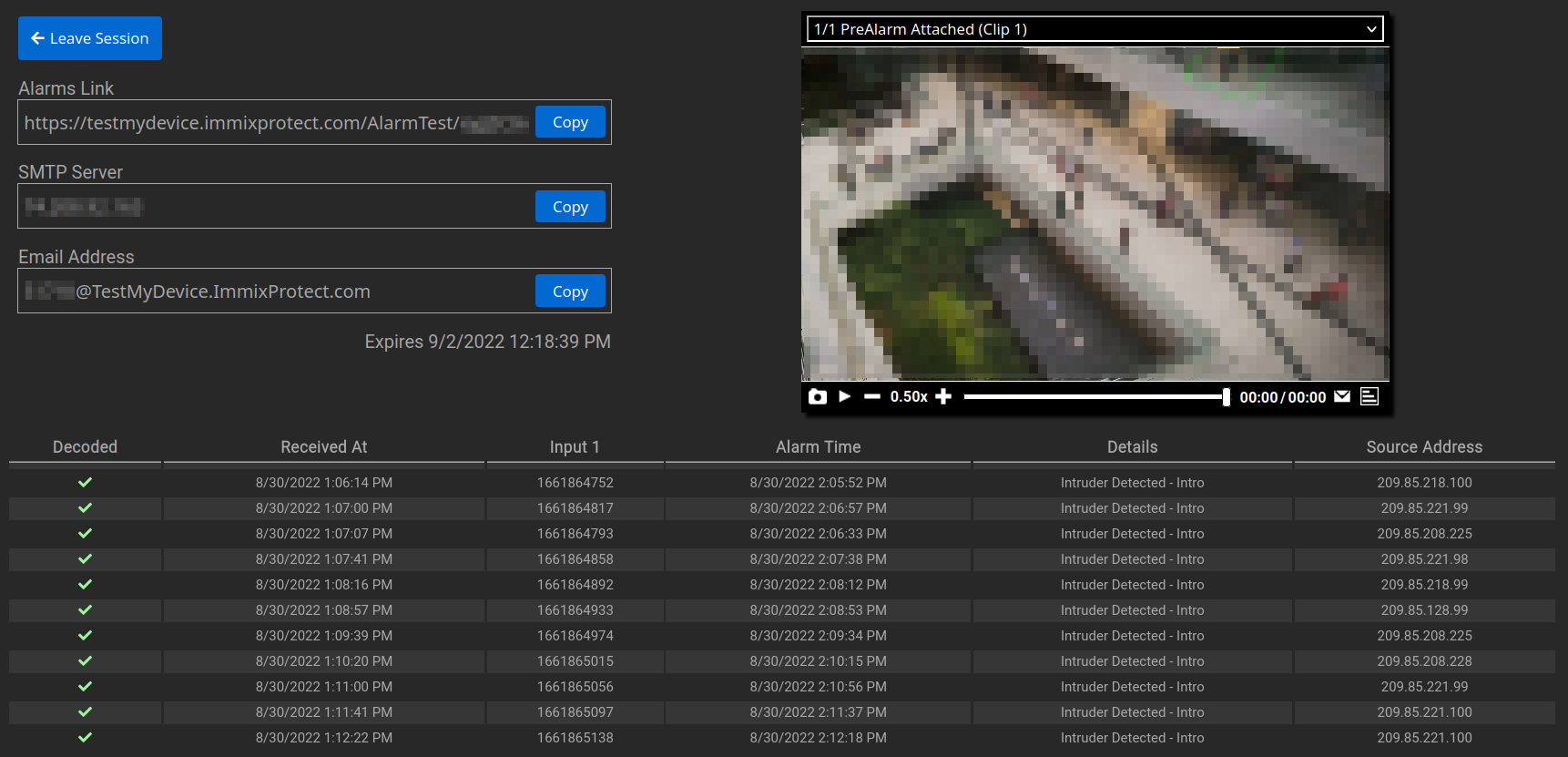 format: it begins 2 seconds before the corresponding incident, and stops 4 seconds after the incident's end timestamp. In the current version, the attached video file size does not exceed 6 megabytes.NOTE: If video sending is enabled and incidents are received very frequently and for an extended period of time, it may overload the system to a point where some video attachments could get delayed or not even included in their respective emails.