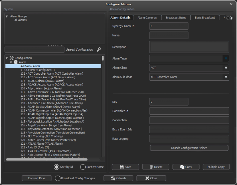Alarms received in Synergy have one of the following identifiers (set as the Key 1 value during configuration, above), corresponding to a specific solution type in IRIS+ Essential - consult the table below for a complete list of them.